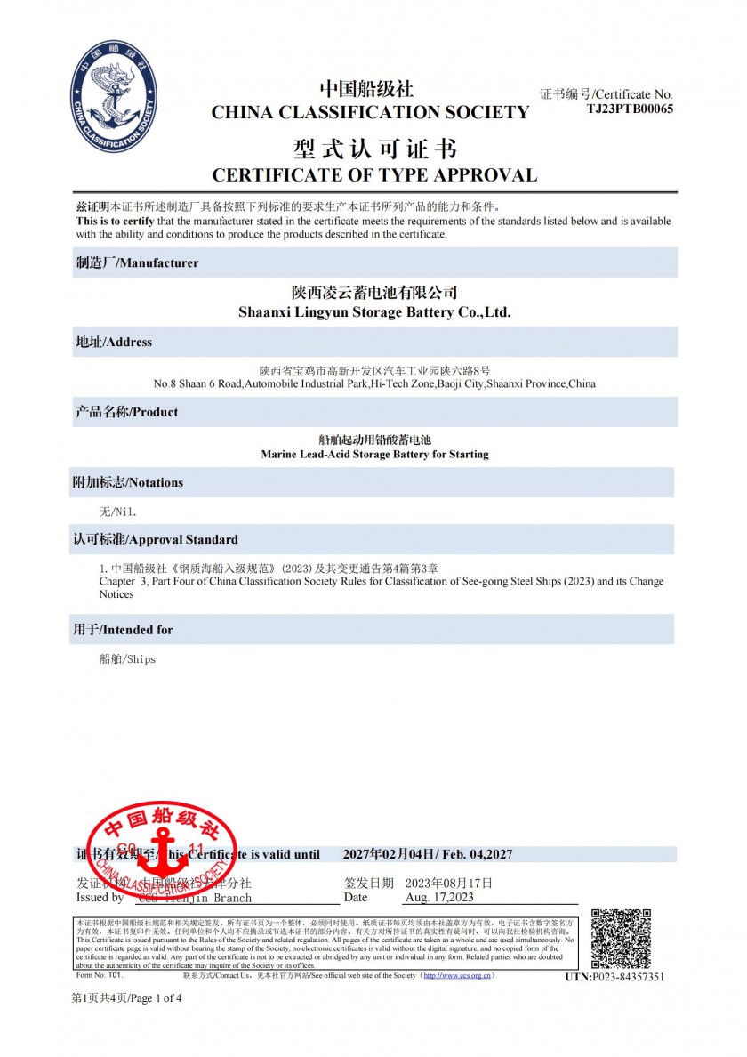 通過CCS中國船級社型式認證